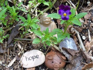 The birds are singing and scavenging, and the garden is alive with native bees, bumble bees, ants, and (yes, my favorite) slugs. I have planted nearly everything I have room to plant, and now the task is to wait for it all to come up, mature, and bear the gifts of food and medicine that we long await. The garden is filled with medicinal and culinary herbs: yarrow, mullein, mints, valerian, elecampagne, tulsi, sage, lemon balm, motherwort, comfrey, nettles, bee balm, saint john’s wort, thyme, calendula, lavender, oregano, dandelion, rosemary, garlic, echinacea, borage, hyssop, and anise hyssop. In pots, I have cilantro, ashwaganda, and tulsi, along with tomatoes, beets, greens, carrots, and chamomile, nasturtium and calendula. I have been putting things wherever I can make an inch of space for them, hoping that they will flourish in the chaos of it all. So far, except for the continual feasting by the slugs, everything is doing well.